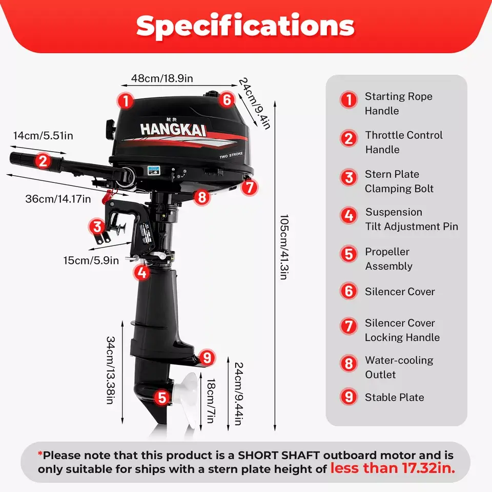 2/4Stroke 6-12 HP HANGKAI Outboard Motor Air/Water Cooling Fishing Boat Engine